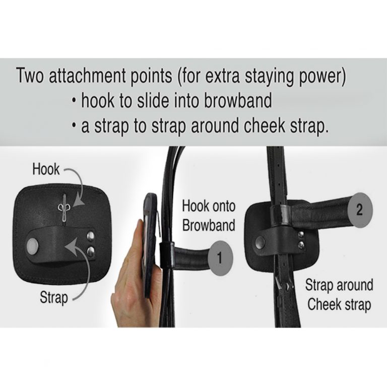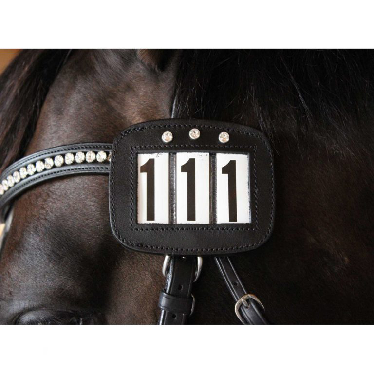 • Number holder include a hook to secure to the brow band and strap to go around the cheek strap.